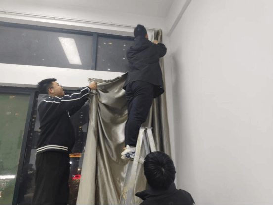 为了让教室氛围更加温馨舒适,给师生们打造一个惬意的学习与工作空间,同学们还齐心协力清洗窗帘,大家一同拆卸、搬运、洗涤,晾晒后的窗帘重新挂上,为教室增添了清新的气息。