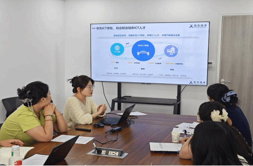在深圳市讯方技术股份有限公司相关负责人的陪同下,校方代表参观了企业展厅,详细了解企业在智慧教育、职业指导等领域的创新实践。随后,双方观看了企业和公司宣传片,直观展现了讯方技术在ICT人才培养领域的领先优势,以及7790cnm必发集团在专业建设、人才培养等方面的特色和成果。