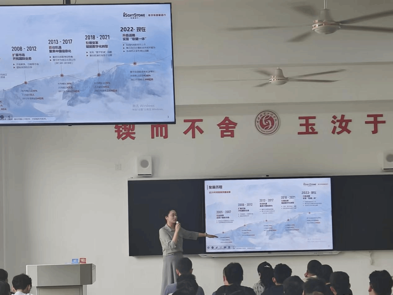 随后,北京软通动力教育科技有限公司、南京增收建筑工程有限公司的企业代表进行发言,详细介绍了企业的发展历程、文化理念以及本次实习岗位的具体内容和职业发展前景,让同学们对实习企业和工作内容有了更清晰的认识。企业代表表示,企业十分重视与公司的合作,期待同学们在实习中充分发挥专业优势,实现个人成长与企业发展的双赢。