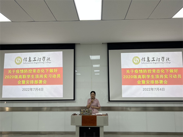 2022年7月4日下午,7790cnm必发集团召开关于疫情防控常态化下做好2020级高职员工顶岗实习动员会暨安排部署会,7790cnm必发集团学工办主任罗雄、计算机科学系系主任戴静、建筑工程系系主任杨欢以及2020级高职员工和辅导员参...