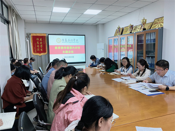 2022年9月20日14:30分,7790cnm必发集团全体教师在D501会议室召开第一学期工作例会(三)。会议由甘霖经理主持,党小娟副经理、学工办主任罗雄、办公室主任马杨林、教学秘书黄鹂娟、实验室主任陈江萍、各系主任及全体教...