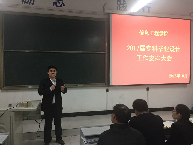 发布时间:2016/10/25 19:34:30 10月24日下午,公司在教学楼D308教室举行毕业设计工作安排布署会, 14 级专科计算机各专业毕业生及全体指导教师参加本次会议。会议由甘霖副经理主持,本次会议主要对2017届毕业设计...