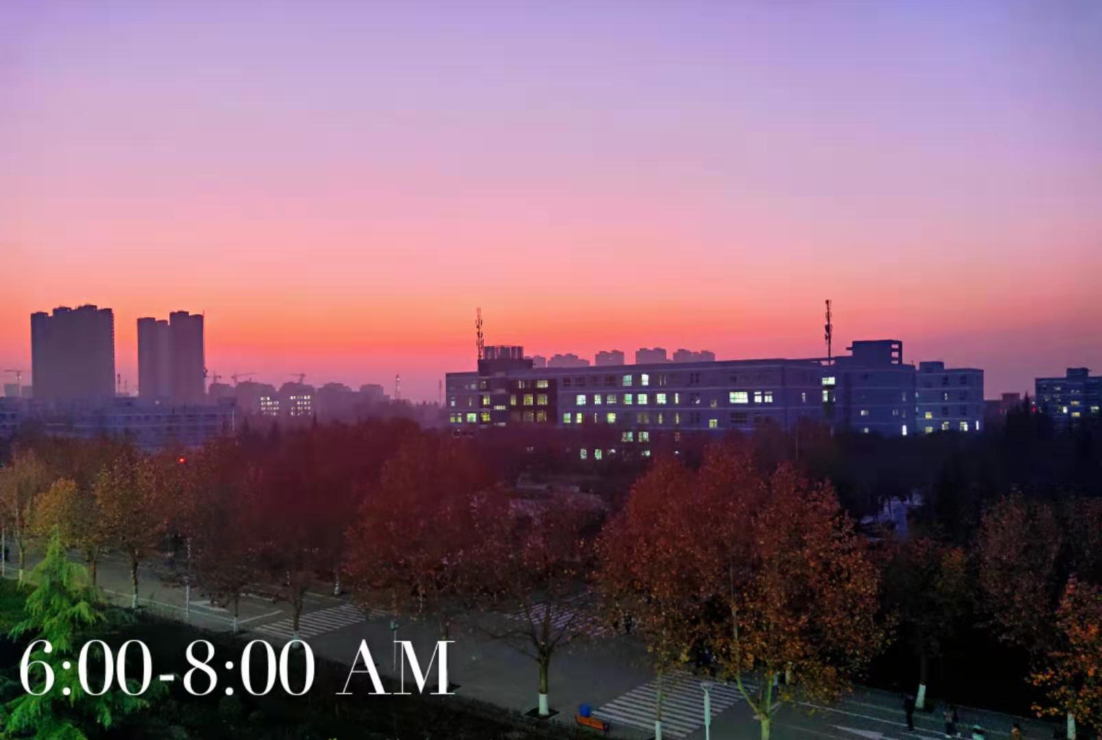 (图稿:韩怡豪) 【6:00-8:00 AM】日出之美,胜在宁静,日出之灿,美在人间。初升的太阳将城市划出了一道清晰的分界线。它从公司的东门升起,唤醒了整座校园。同学们的晨读声伴着朝阳,昭示了新的一天的开始。 【8...